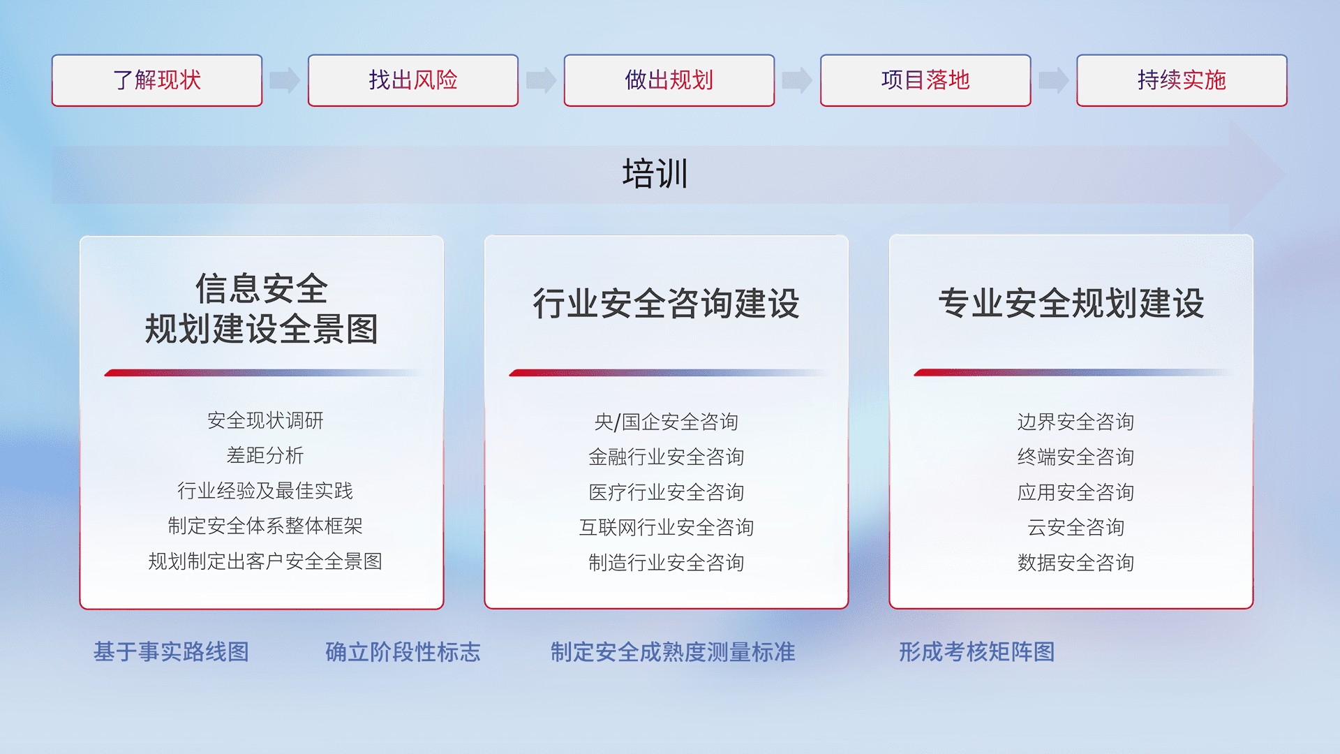 通过专业的法律咨询解读、、合规架构体现、、、差异化解决方案、、、测试实施支持等服务,,为客户量身打造等保合规体系。。